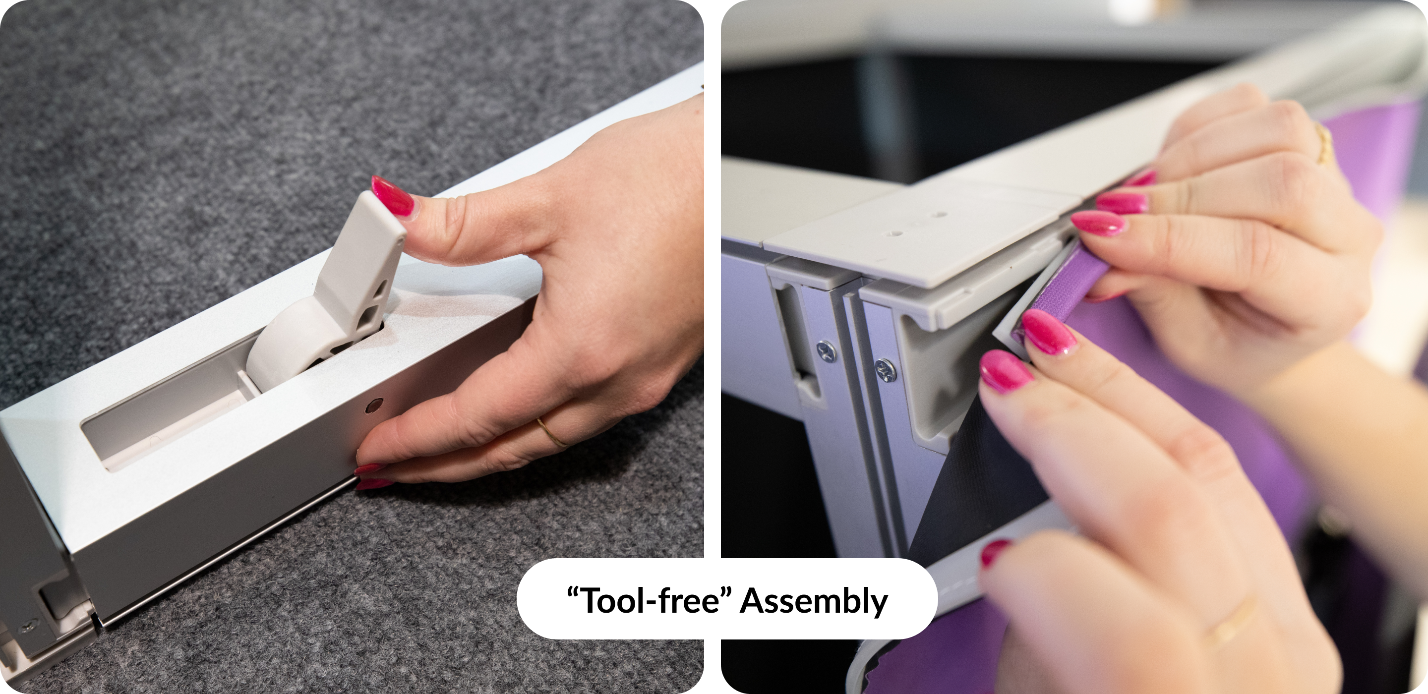 Tool-free assembly enables the team that travels to the trade show to manage the setup and teardown processes for the exhibitor. This dramatically reduces long-term trade show booth costs for the exhibitor and positions the reseller as a true strategic partner.