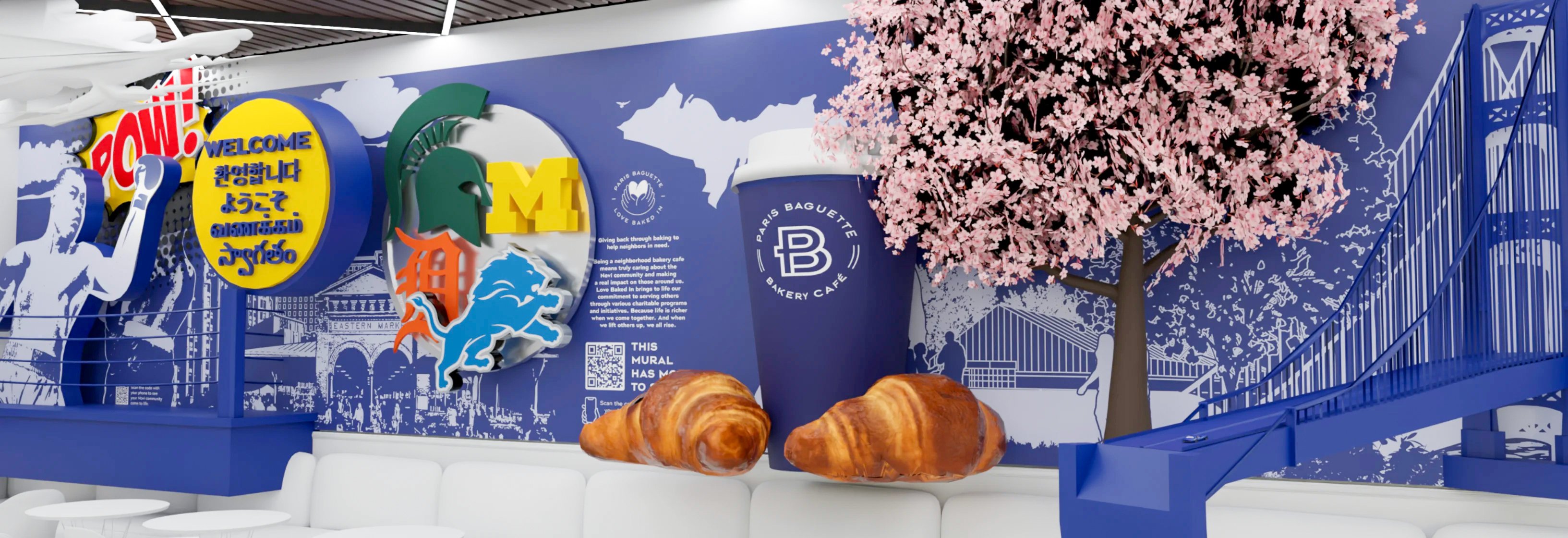 The “Love Baked In” murals inside Paris Baguette’s newest cafés highlight the special character of each neighborhood — and showcase the complementary capabilities of Taylor and Bolster.