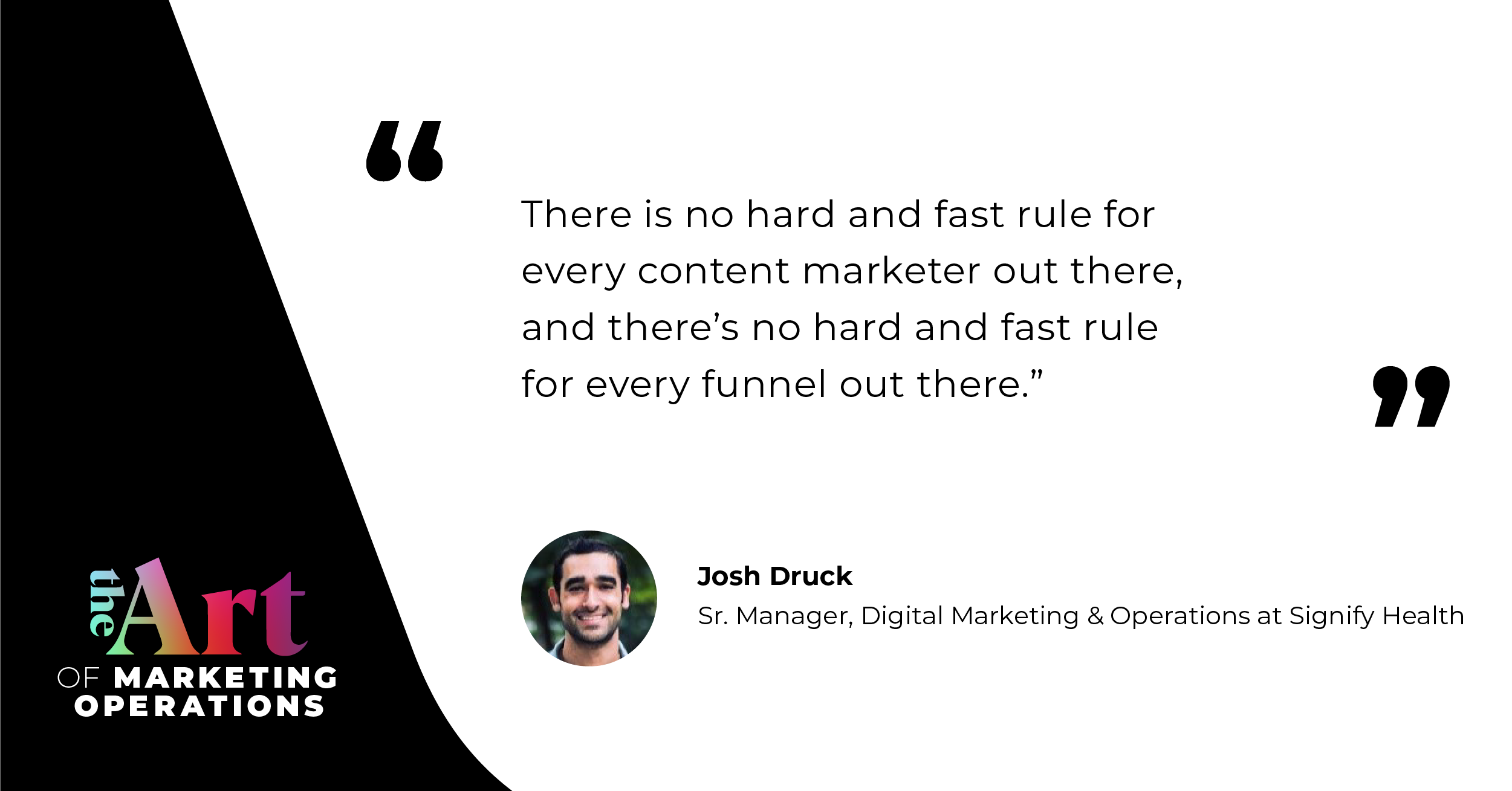 “There is no hard and fast rule for every content marketer out there, and there’s no hard and fast rule for every funnel out there.” — Josh Druck