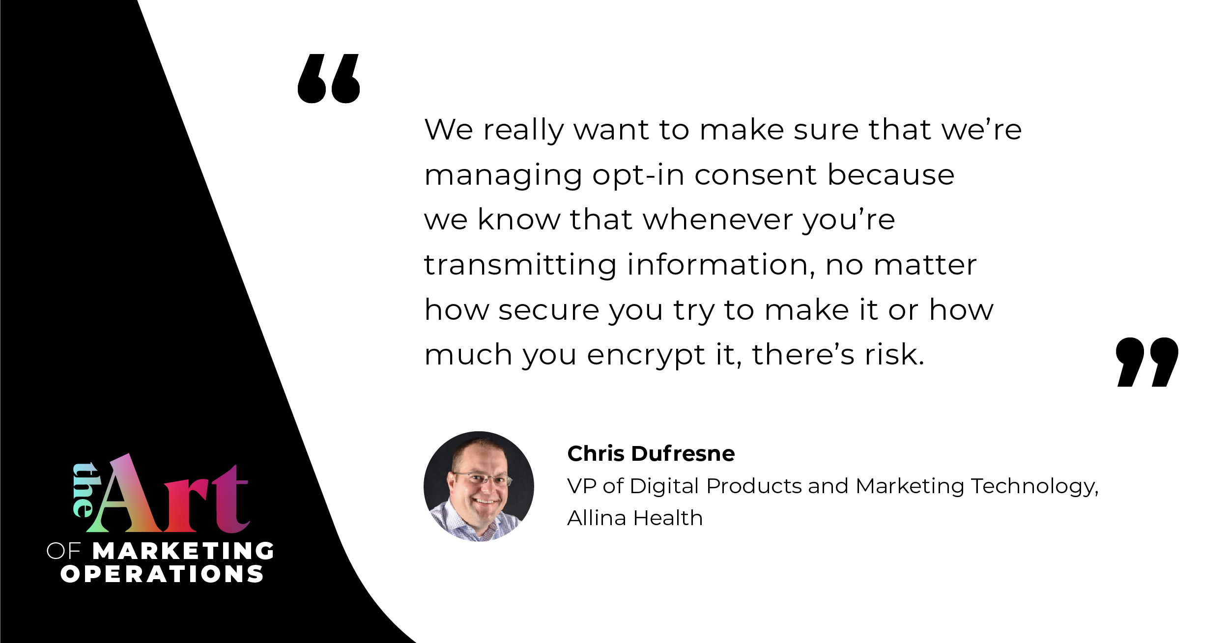“We really want to make sure that we're managing opt-in consent because we know that whenever you're transmitting information, no matter how secure you try to make it or how much you encrypt it, there's risk.” — Chris Dufresne